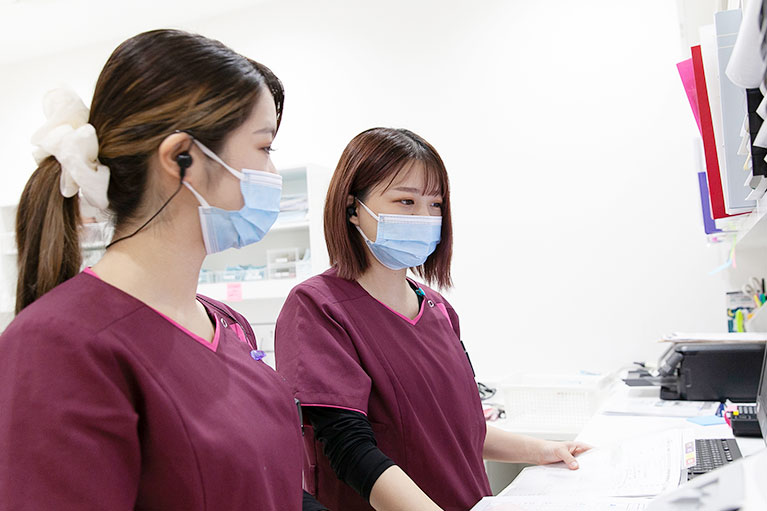 現場で働く先輩スタッフがつくった診療マニュアルがあるので、勤務したての頃でもスムーズに業務を覚えられます。 また、わからない点は遠慮なく先輩スタッフに尋ねることができるので安心です。
